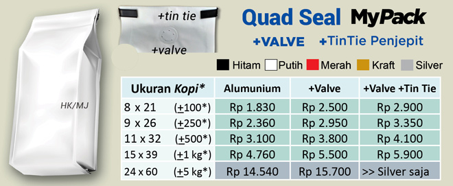 Mypack Gusset Quad Seal +Valve +Tin Tie / Penjepit